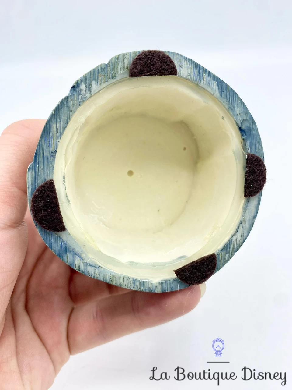 Boite en résine petit format, style « boite à dent » sur le thème du dessin animé Aladdin. La boite représente une grotte grise comme la caverne aux merveilles. Devant la pierre, se trouvent les personnages d’Aladdin tenant la lampe magique et du petit singe Abu. À l’arrière se trouve le Génie de la lampe. Le dessus de la grotte aux trésors s’ouvre et forme le couvercle de la boite.
