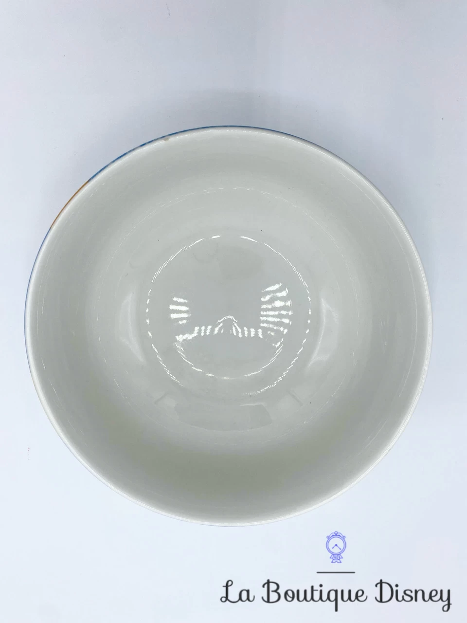 Bol en céramique blanc avec bandeau bleu faisant le tour du bol et sur lequel est représenté les visages des deux soeurs d’Arendelle : Anna et Elsa. Belle qualité des dessins.