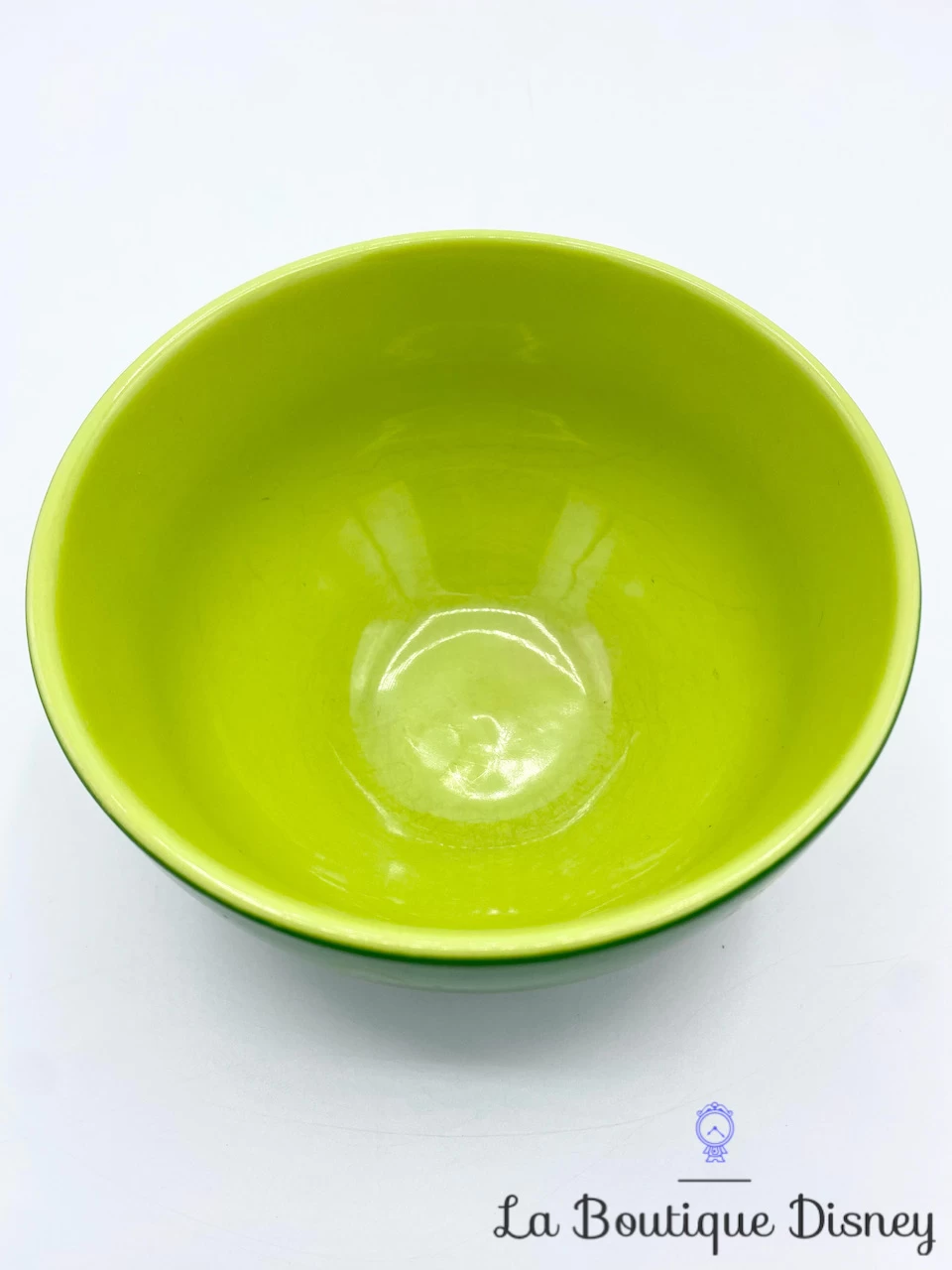 Bol en céramique vert sur le thème de Tigrou, le tigre orange à rayures noires ami de Winnie l’ourson. Il est représenté plusieurs fois avec différentes inscriptions : « Free membership », « Official Member », « Boucing Since 68 », « The Tigger Club ». Il y a également en anglais toutes les règles du « Tigger Club » !