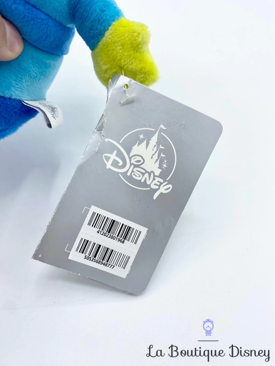 Peluche miniature du célèbre petit extraterrestre vert Alien. Il a trois gros yeux blancs et une grosse tête verte. Il porte une combinaison spatiale bleue sur laquelle est brodé le logo du restaurant Pizza Planet. Il a une antenne au dessus de la tête. Le dessous de ses chaussures est renforcé d’un léger cartonnage ce qui lui permet de tenir parfaitement debout ! Disponible en deux versions : avec étiquette papier d’origine ou avec étiquette coupée (voir photos).