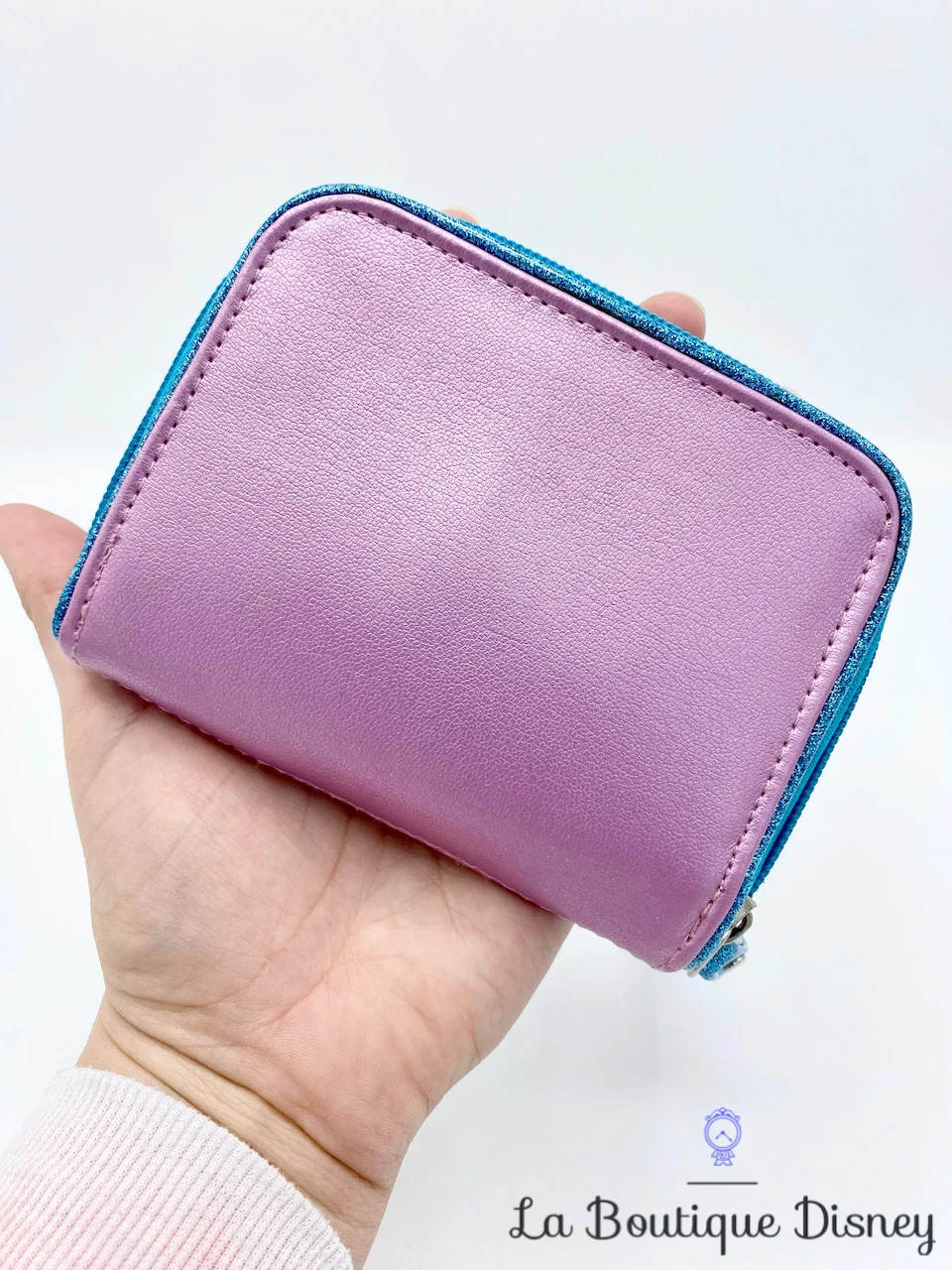 Porte monnaie en simili cuir brillant violet et bleu à paillettes. Sur le devant, il y a le portrait des deux soeurs Anna et Elsa. Tout autour d’elles, il y a des fleurs multicolores brodées. Dos uni. Petite lanière « tour de poignet » bleu à paillettes pour tenir plus facilement le porte monnaie. À l’intérieur, il y a deux compartiments pour y ranger tout votre argent ! Fermeture grâce à une fermeture éclair.