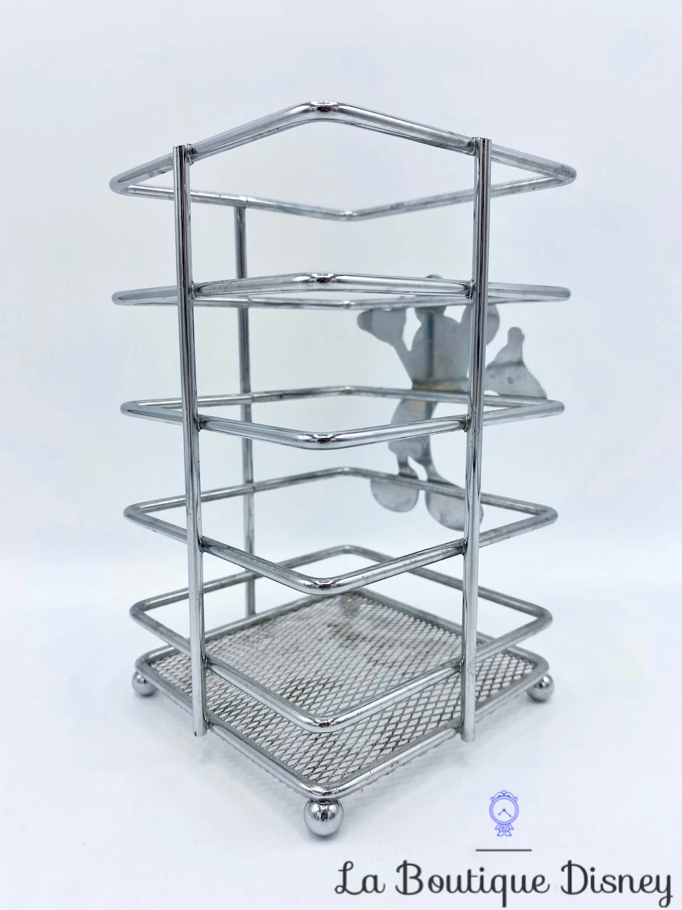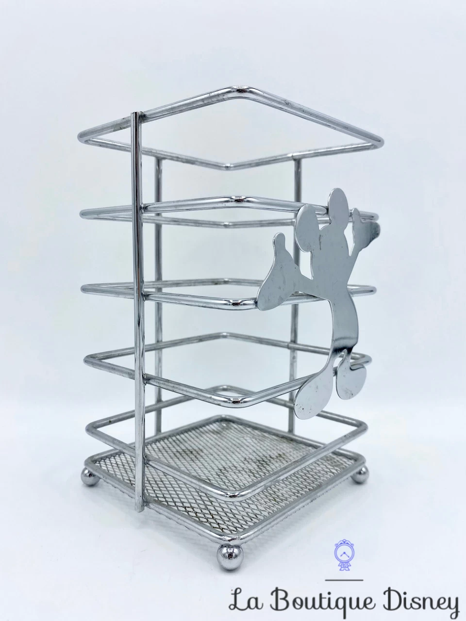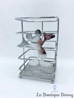 Pot servant à ranger des ustensiles en métal argenté sur le thème de Mickey Mouse.