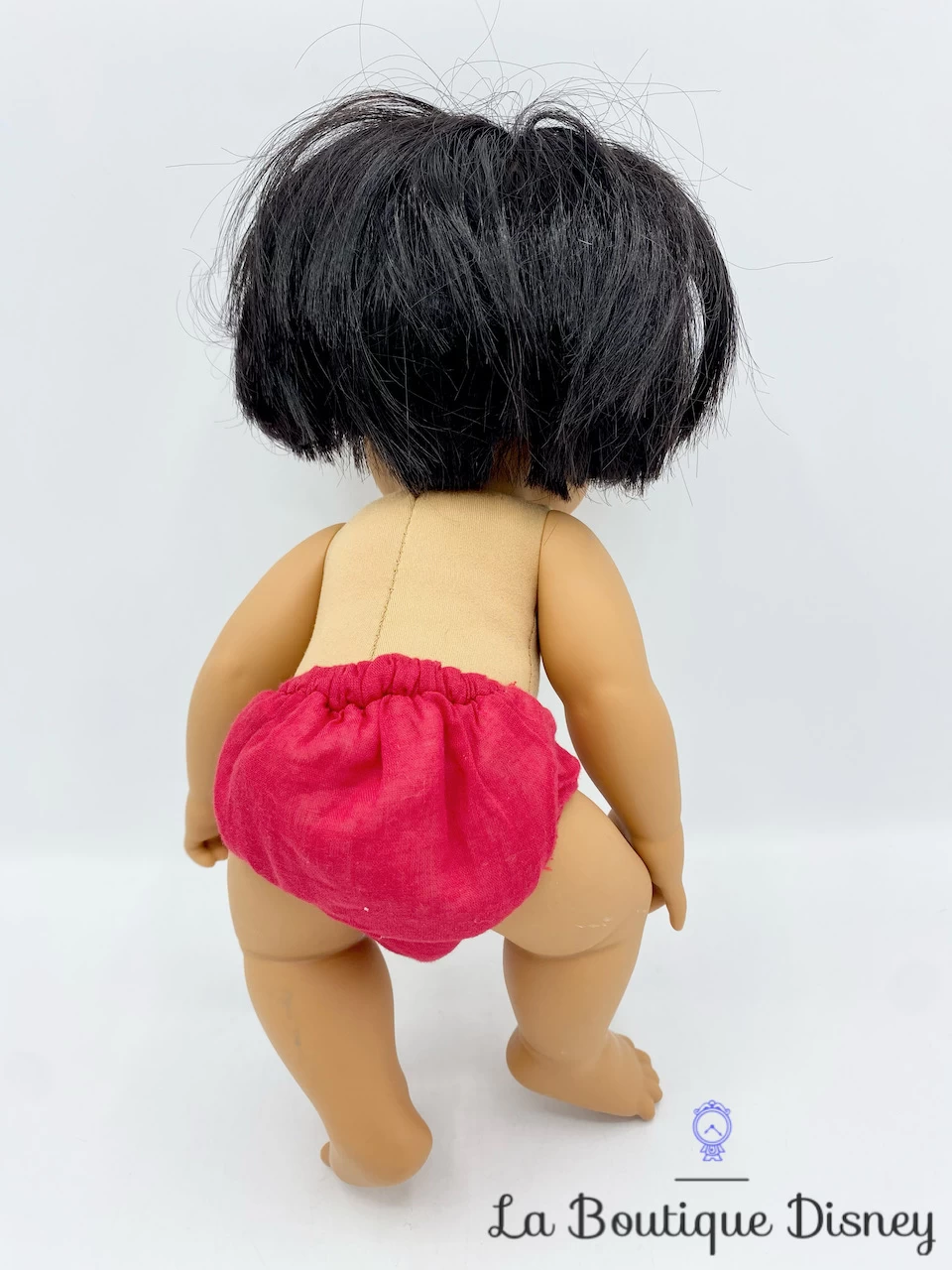 Poupée représentant le jeune garçon de la jungle Mowgli lorsqu’il n’était encore qu’un bébé. La poupée a un visage très détaillé, sa tête, son corps et ses bras sont en plastique dur mais son corps est en tissu souple. Il a de très beaux cheveux noirs. Poupée très réaliste fidèle au film Walt Disney !