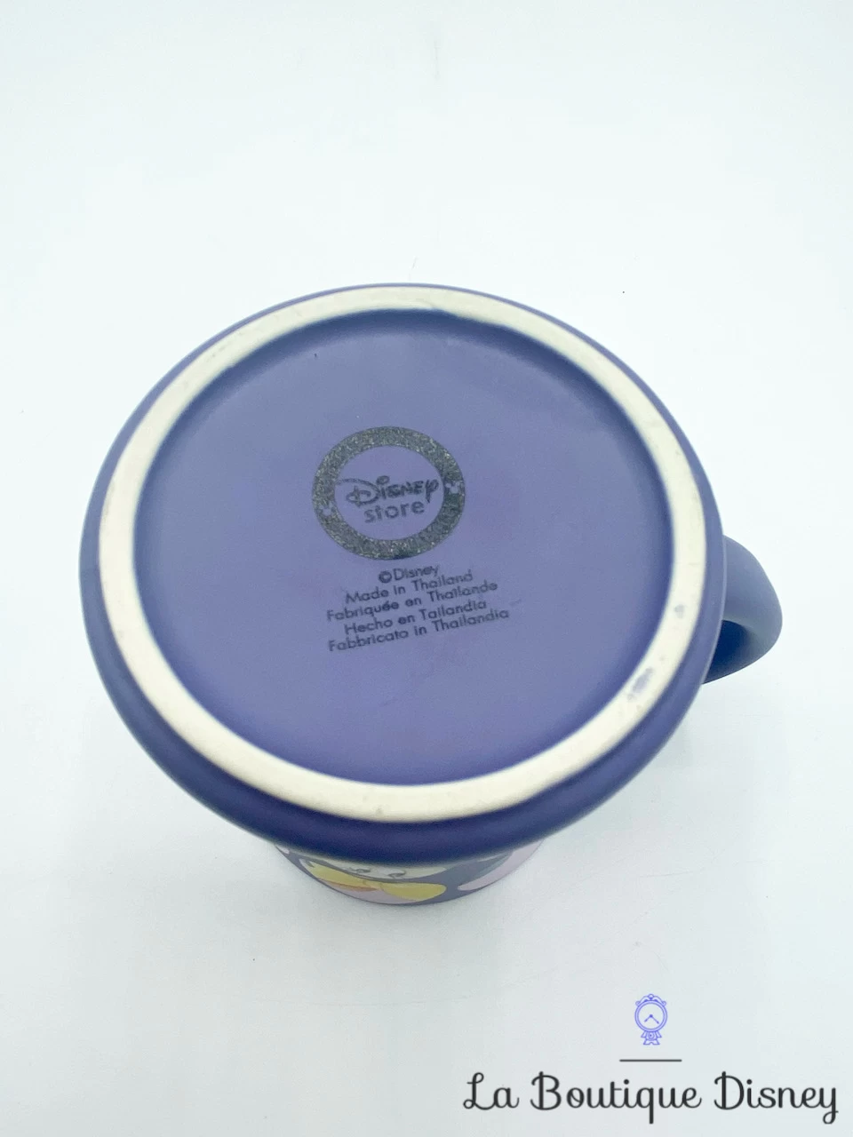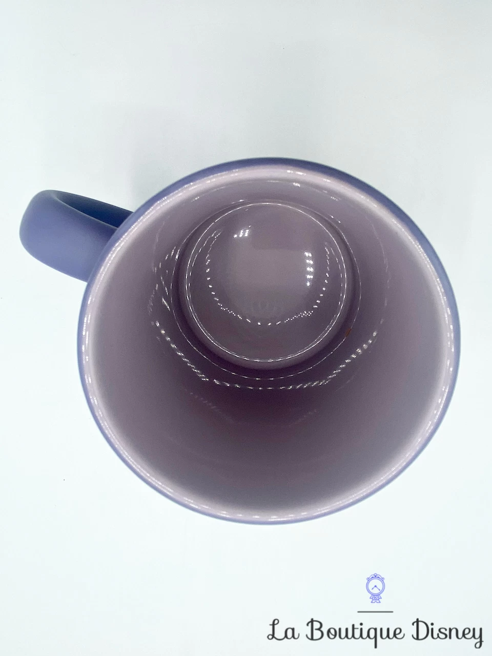 Mug en céramique violet avec des gros pois roses et Minnie Mouse, votre souris préférée ! Elle a des chaussures et un gros noeud jaune sur la tête. Dans certains pois, il y a des inscriptions comme « Smile », « Laugh », « Cutie » ou encore « Minnie ». Mug ayant une forme légèrement incurvée. Anse et intérieur violets.