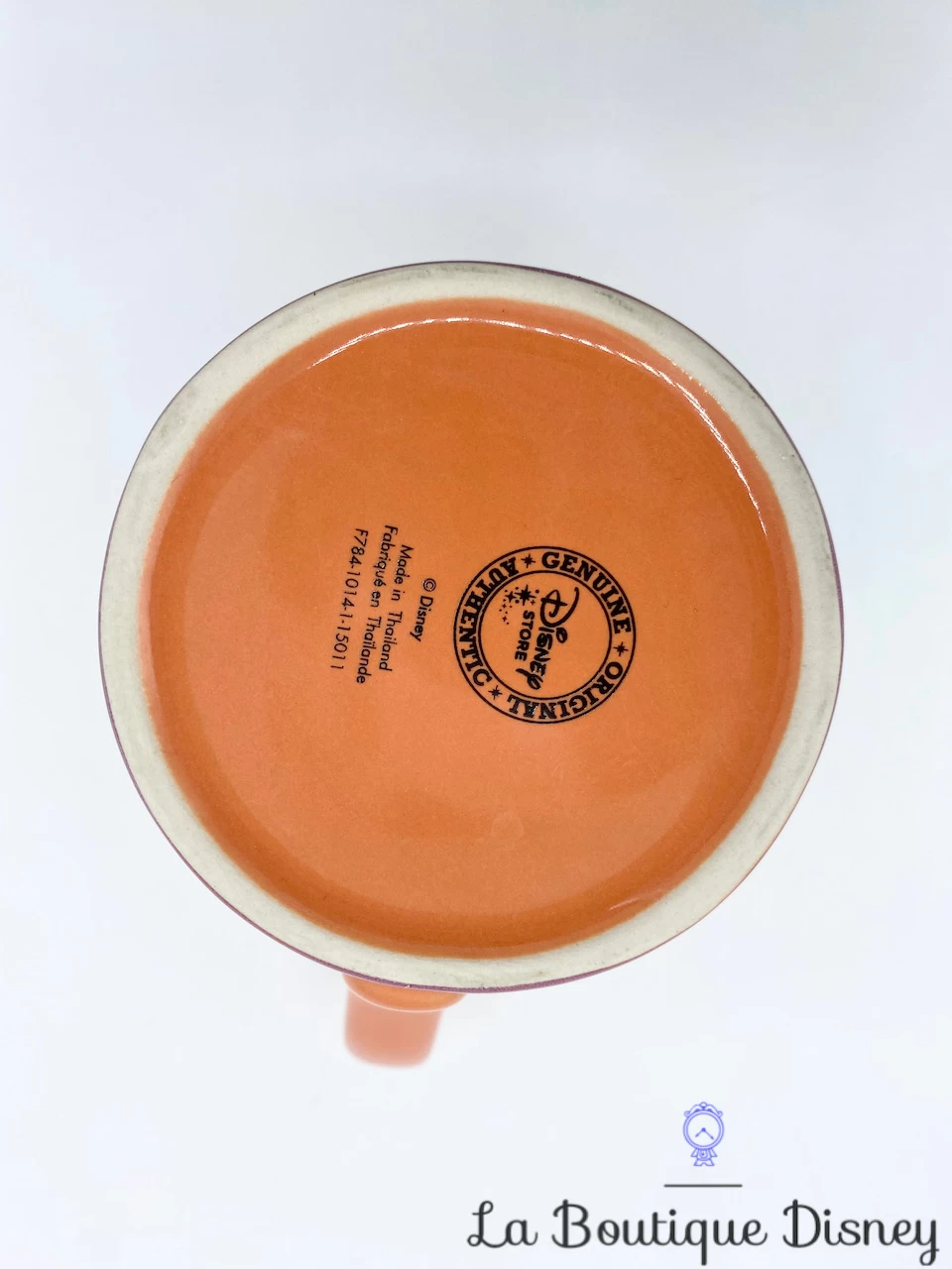 Mug dans les tons de rose et orange avec sur une face la représentation de notre petit monstre bleu favori, Stitch. A côté de lui, se trouve un ananas géant ainsi que des fleurs de différentes couleurs. Sur l’autre face de la tasse, il y a une deuxième représentaion de Stitch, cette fois-ci en plus gros plan. Il est assis et vous regarde d’un air hésitant. L’inscription en marron « Stitch » est présente deux fois sur le bas du mug. La anse est orange comme l’intérieur de la tasse. Léger relief 3D.